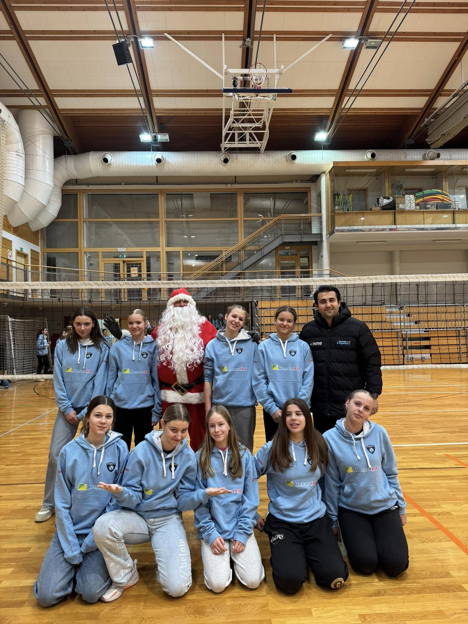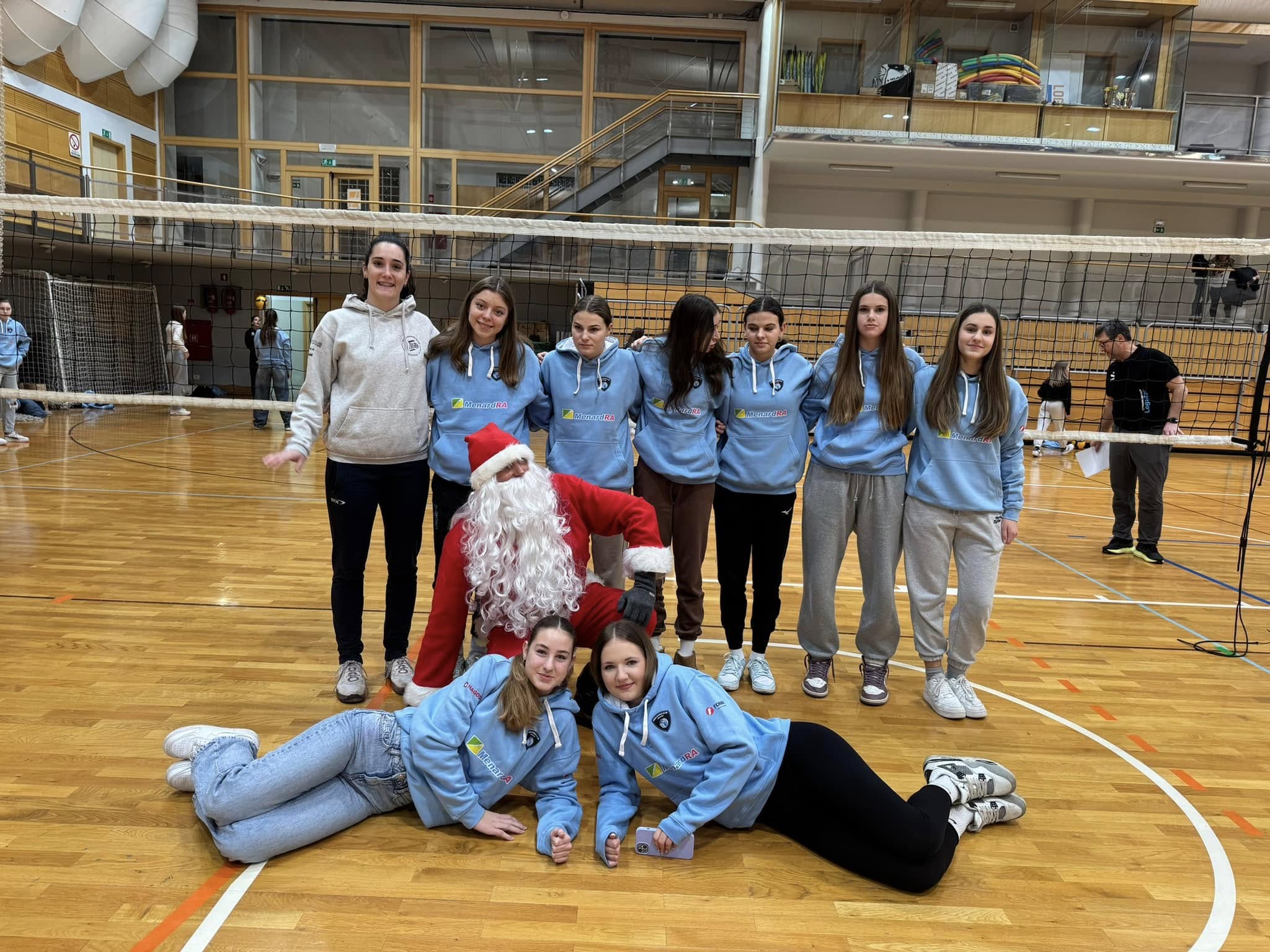 Dan se je pričel s prihodom Božička k našim mini odbojkašicam. Po obdarovanju se je pričel turnir mini odbojke.