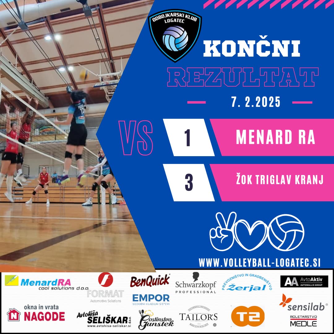Članska ekipa Menard RA proti ŽOK Triglav, rezultat Podrobnosti 12 februar 2025 V petek, 7.2.2025, so se članice Menard RA borile proti ekipi ŽOK Triglav. Z rezultatom 3:1 so se vrnile domov brez točk.