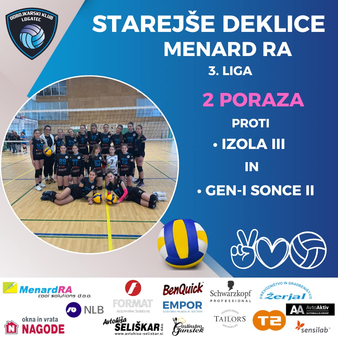 V soboto, 23.11.2024, so se v domači športni dvorani pomerile starejše deklice, ekipe Menard RA in izkusile dva poraza.