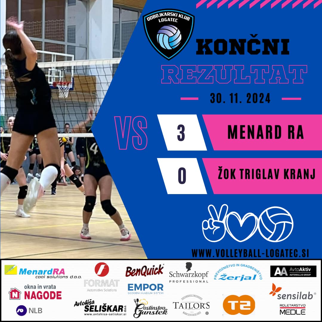Končni rezultat med ekipama Menard RA IN ŽOK Triglav Kranj, 3:0.